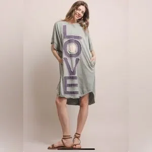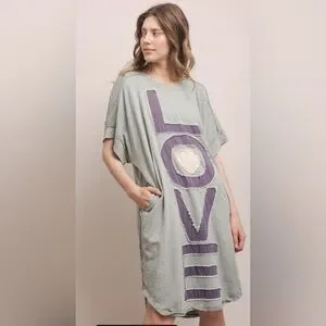 NWT Blue Velvet Love Lettering Patchwork Short Sleeve Dress Sz XL