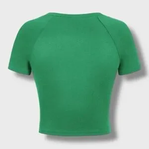 green crop top, sporty crop top, athletic style top, jersey style top, number graphic top, fitted crop top, short sleeve crop top, y2k top, 90s inspired, streetwear top, sporty chic, casual top, everyday wear, model off duty, cool girl style, edgy aesthetic, versatile top, statement top, trendy top, must have top, staple piece, tik tok trending, viral style, affordable fashion