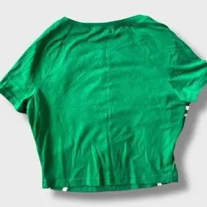 Stylish green crop top featuring a bold star and number design. Perfect for a trendy look.
