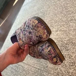 Charming floral mules with a comfortable fit. Ideal for casual outings.