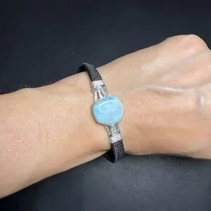 Elevate any look with this stunning, one-of-a-kind Larimar bracelet. Featuring a beautiful, polished natural Larimar stone, this piece is a true conversation starter.