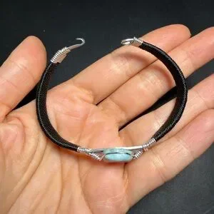 Style: This bracelet features a unique wire-wrapped design that securely holds the central Larimar stone.