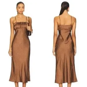 The Leo Dress by Ciao Lucia is a breezy midi with a tie-front detail and delicate spaghetti straps, perfect for sunlit strolls and summer getaways. Pair it with strappy sandals and a woven tote for an effortless look.