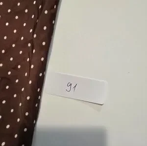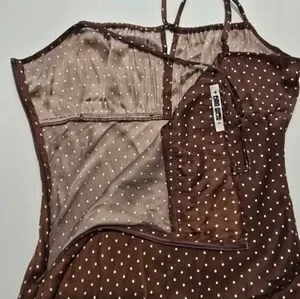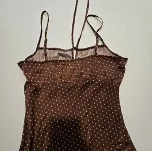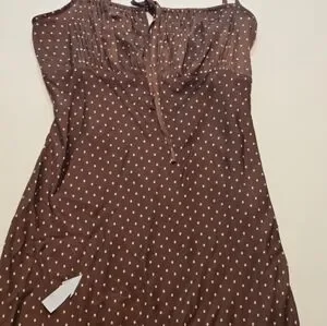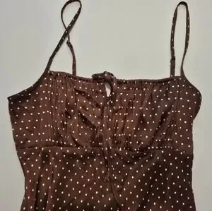 Brown polka dots (100% Polyester). Casual dress. Square neck. Sleeveless. Pull on.