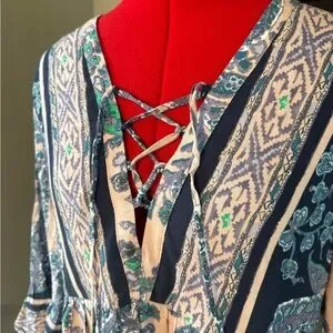 Jodifl Boho Paisley Print Lace Up Neck Maxi Dress Size S NWT