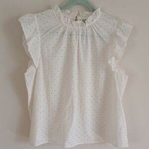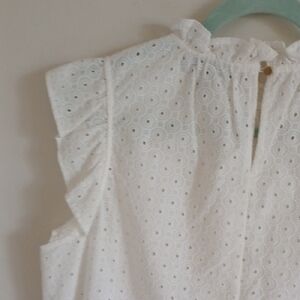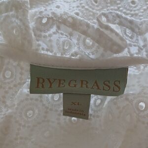 Ryegrass Women's White Eyelet Ruffle sleeve top XL