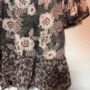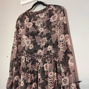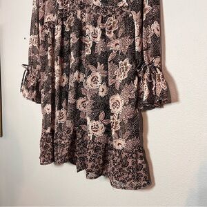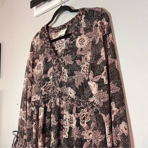 Knox Rose Mini Dress Floral Boho Long Sleeve V-Neck Size Large Brown
