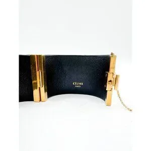 Authentic Celine Leather Manchette Hinged Bangle from the highly sought-after Phoebe Philo era. This is a stunning wide cuff bracelet in excellent condition — far superior to most pre-owned examples currently on the market.
