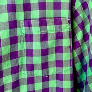 Sonoma Lifestyle aqua and purple gingham 100% cotton long sleeve XXL. One chest pocket. Two extra buttons. Breathable, cool cotton.