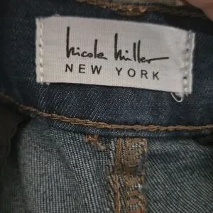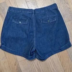 Chic dark denim pleated and cuffed shorts by Nicole Miller. Perfect for casual wear. Classic design with a modern twist.