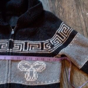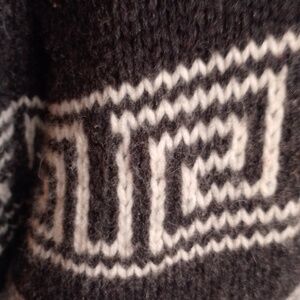 Beautiful cozy wool sweater with tribal patterns as well and TNA symbol. 100% lambs wool great sweater to keep you warm all winter long!!