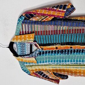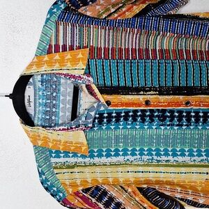 Vatpave Multicolor Striped Short Sleeve Retro Boho Button Down Shirt Size M