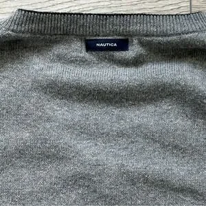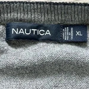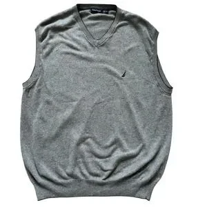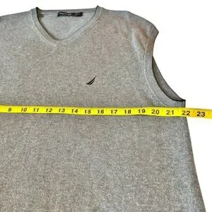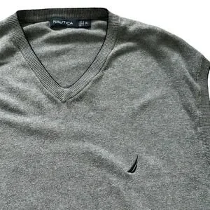 Elevate your wardrobe with this Nautica Navtech V-Neck Sweater Vest in gray, size XL. Crafted in a luxurious cashmere blend, this vest features a ribbed hem, classic navy embroidered Nautica logo, and versatile textured knit design. Perfect for layering over a button-down shirt or pairing with slacks or jeans for a polished, preppy look.