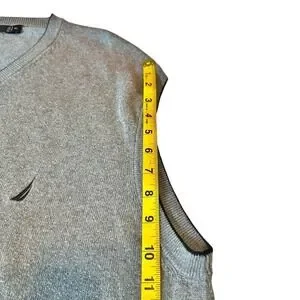 Nautica Navtech Sweater Vest XL Gray V-Neck Cashmere Blend Logo Ribbed Hem