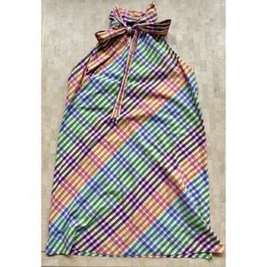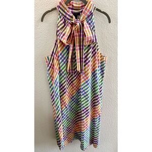 J.Crew Rainbow Plaid Halter Dress Size 16T Shift Bow Tie Neck Gingham Easter