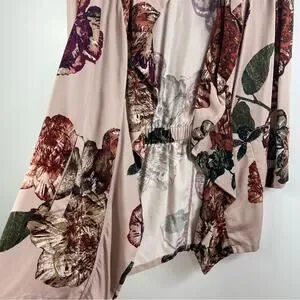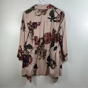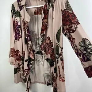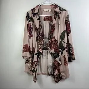 Romantic Pink Floral Ruffle Chico's Open Front Cinched Back Jacket Small Spring