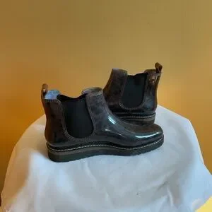 Chic and comfy brown/black booties with leopard pattern. Sleek and modern design. Ideal for a bold fashion statement. Pre owned but not worn often, in great condition