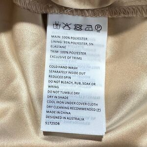 Main: 100% Polyester. Lining: 95% Polyester, 5% Elastane. Trim: 100% Polyester.