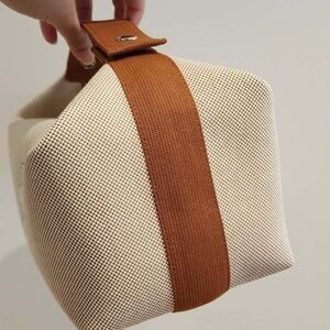 Elegant Hermes hobo bag. Features beige and brown tones. Embroidered horse design adds charm. Perfect for any occasion.