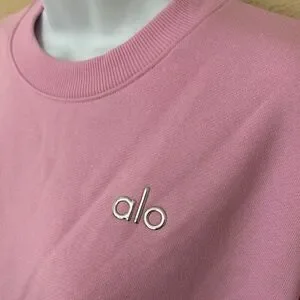 Soft pink sweatshirt with ALO Yoga logo. Ideal for everyday comfort. New with tags