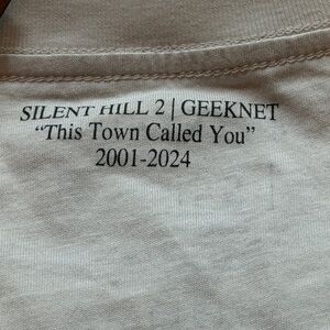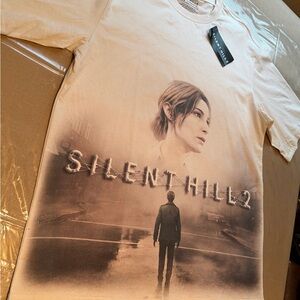 Step into the world of Silent Hill with this captivating graphic tee. Featuring a soft beige color, it's a must-have for fans of the series. Enjoy comfort and style in one iconic shirt. SIZE SMALL