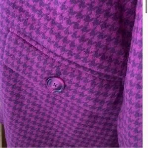 Chic plum houndstooth design. Features toggle closures. Ideal for stylish warmth. Size 0. Model is size 12 so this fits completely different on a size 0 person.