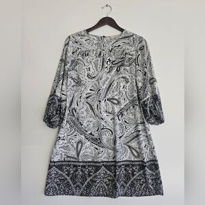 LOFT Black & White Paisley Border Print Midi Dress | Boho Chic Mod Shift