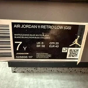 Stylish Jordan sneakers for kids. White with light blue accents. Perfect for everyday wear. Never worn original box.