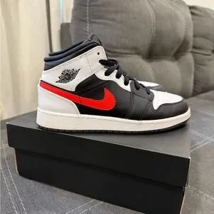 Air Jordan 1 Mid Black Chile Red GS 4.5Y – Good Condition – Box Included