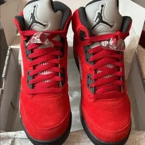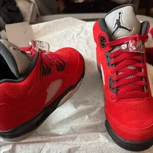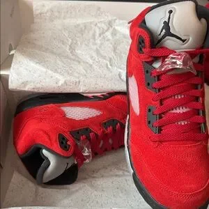 Bold red sneakers with sleek black details. Perfect for active kids.