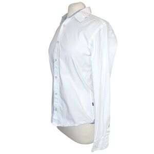 Hugo Boss Crisp White Structured Textured Slim Fit Tailored Button Down Blouse S