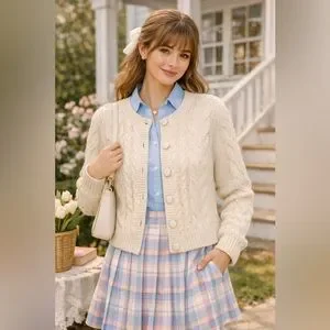 Pair with a floral dress, linen skirt, or high-waisted jeans for a cozy preppy, cottagecore, or coastal classic look.