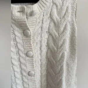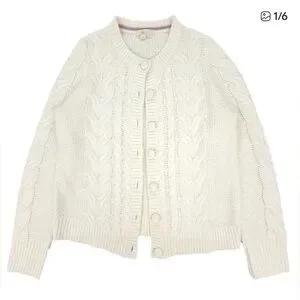 Beautiful Boden cable knit cardigan crafted with soft alpaca blend yarn for a cozy yet elevated feel. This classic ivory sweater features intricate cable knit detailing, a timeless button-front design, and a slightly cropped silhouette that pairs perfectly with dresses, skirts, or denim.
