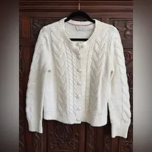 Boden Alpaca Cable Knit Cardigan Sweater – Ivory – Size 12 – Vintage Inspired