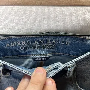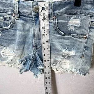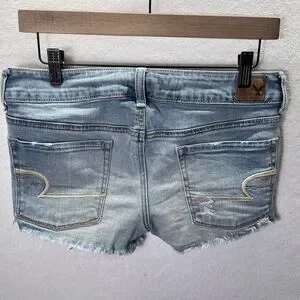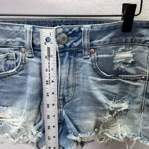 American Eagle Distressed Shortie Shorts Womens 6 Stretch Blue Denim Cute 2367