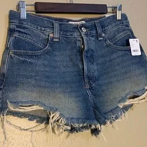 New We The Free Now or Never Denim Blue Frayed Jean Shorts Westend Size 27