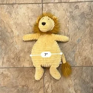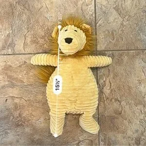 Jellycat London brand retired plush lion. Cordy Roy Lion. Yellow corduroy material with fluffy brown mane and tail tip. In good used condition with no tears or staining.