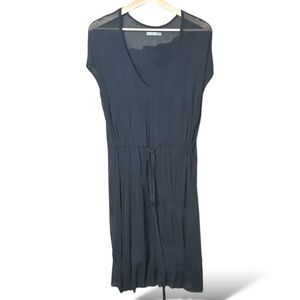 SARAH PACINI Grey Semi Sheer Knit Mesh Midi Dress Cap Sleeves Drawstring Waist M