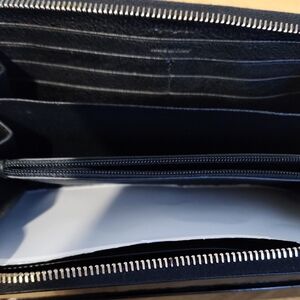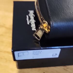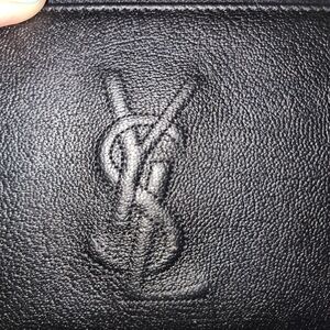 Elegant black wallet with embossed YSL logo. Sleek and stylish design. Perfect for any occasion. Beautiful sof leather.