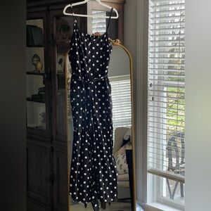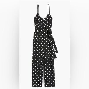 J Crew NWT Strappy wide-leg jumpsuit in black and ivory polka dot