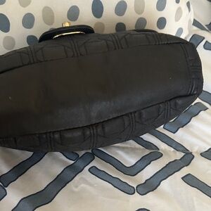 This elegant black quilted shoulder bag features a stylish design with gold accents. Perfect for any occasion, it combines fashion and functionality seamlessly.only has scratches on Turlock