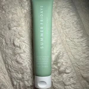 Mint green tube with white cap. Refreshing skincare essential. Summer Fridays super amino gel cleanser very hydrating. Perfect for travel size.