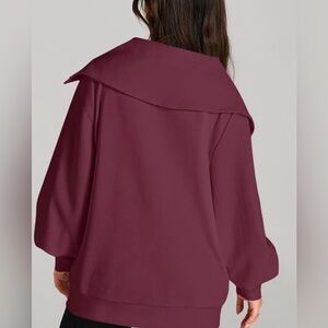 EFAN Women's Wine Color Oversized Full Zip Up Midweight Sweatshirt. Size: XL.