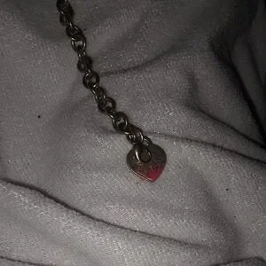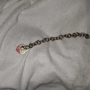 Elegant Tiffany & Co. bracelet. Features silver chain and pink accents. Classic heart charm design.