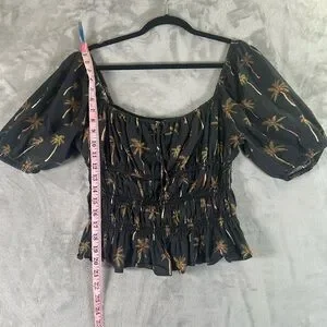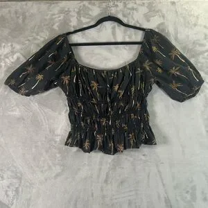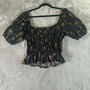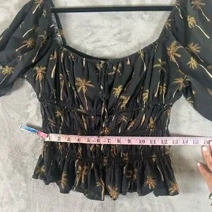 Lavender Brown palm tree peasant top