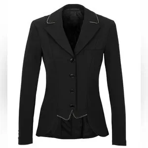 Size 38, US 10, GB 24. Brand new black equestrian show coat. Breathable air mesh underarms, rhinestone detailing. In perfect condition!