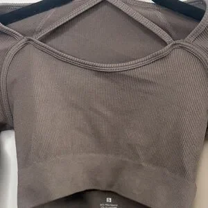 Shein chocolate rubber crop top with criss cross front and back detail. Ideal for working out!