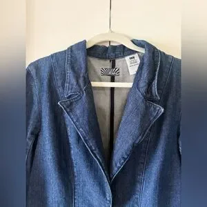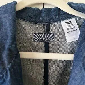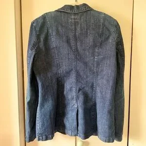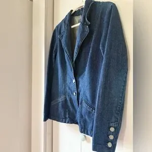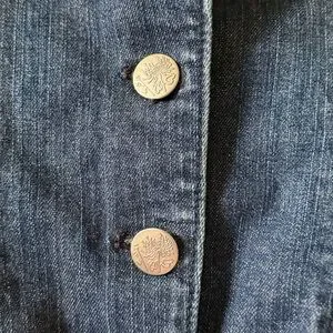 Chic Levi's jean jacket in dark blue. Features button closure and tailored fit. Ideal for casual wear.