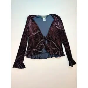 Vintage R&K Evening Velvet Glitter Tie Front Ruffle Emo Cardigan Top Red Gothic