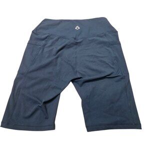 Athletic shorts with 10" inseam. Crossover waistband. Silicone grips in both the waistband and leg openings to keep everything in place. Side pockets. No front seam. 77% polyester, 23% spandex.